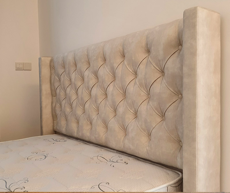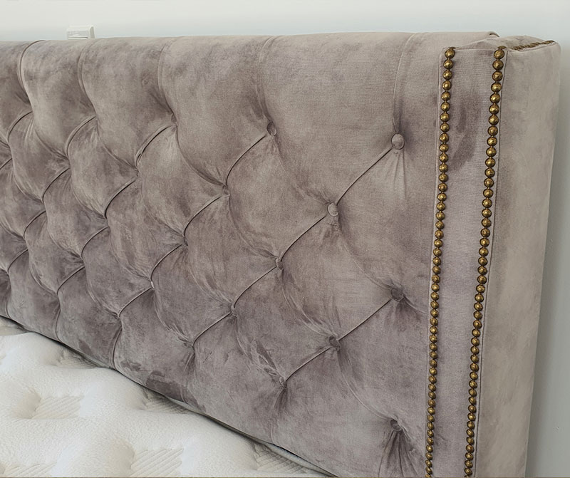 Finish off your bed with this exquisite Florence headboard. With stunning diamante button detailing and luxurious fabric upholstery, this headboard will be sure to make a statement in your bedroom. Match this headboard with one of our divan bases for that final finishing touch to your bedroom.