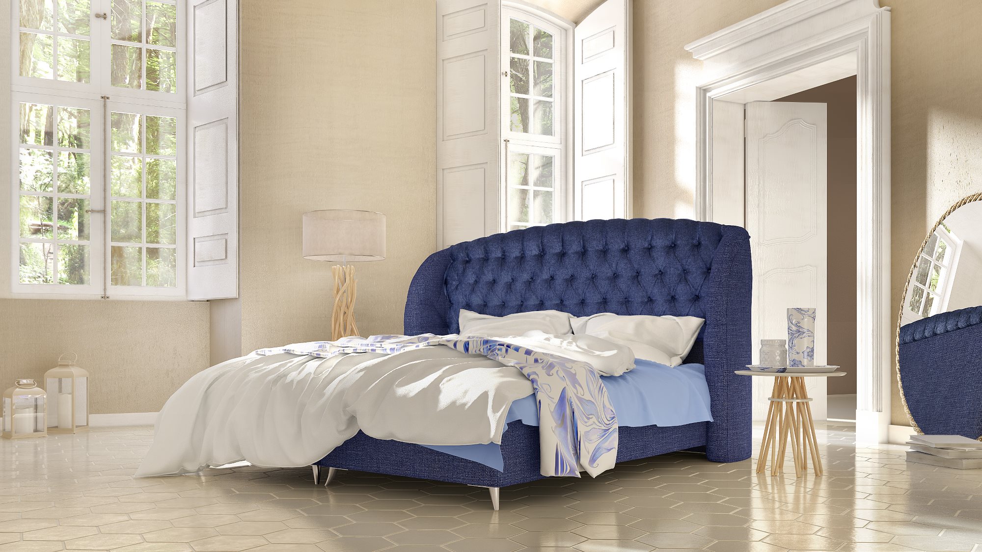A uniquely charming design meets creativity on the particular Neptune headboard.