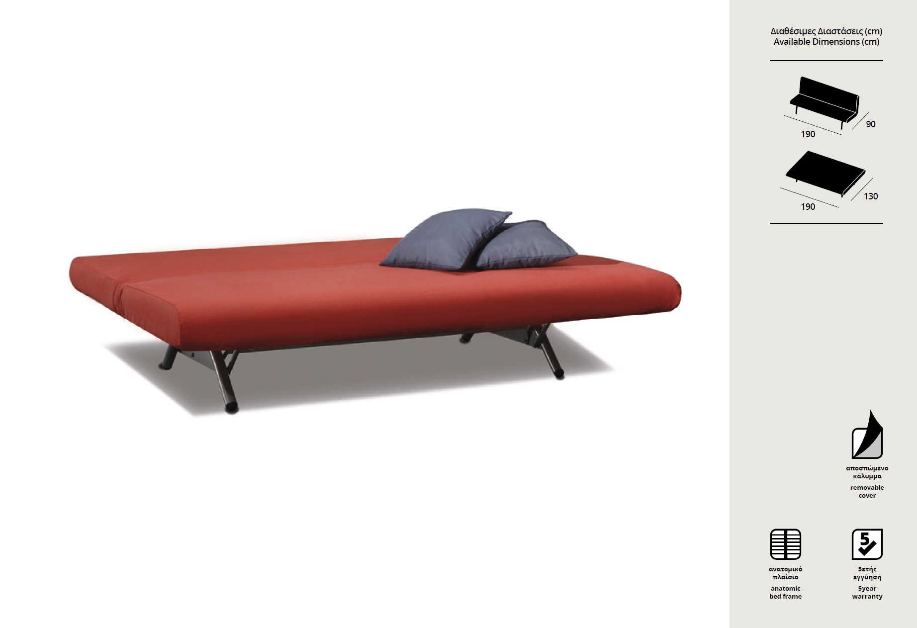 ΠΕΡΙΓΡΑΦΗΟ ειδικά σχεδιασμένος μηχανισμός του καναπέ ICON, λειτουργεί ώστε με μια απλή κίνηση της πλάτης να δημιουργείται διπλό κρεβάτι.Η λιτή σχεδίαση και η οικονομική τιμή του, τον κάνουν άριστη επιλογή για καθιστικό χώρο ή δωμάτιο καλεσμένων.