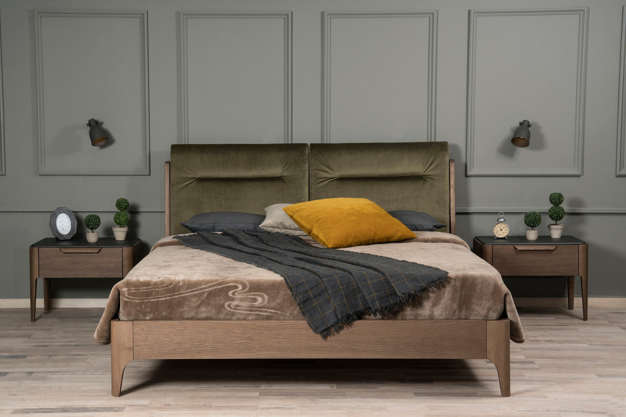 Ξύλο, ύφασμα σε μοντέρνα χρώματα και λάκα είναι τα στοιχεία που χαρακτηρίζουν την κρεβατοκάμαρα New Liberty και σε συνδυασμό με τις απαλές καμπύλες μας προσδίδουν μια ρομαντική διάθεση.