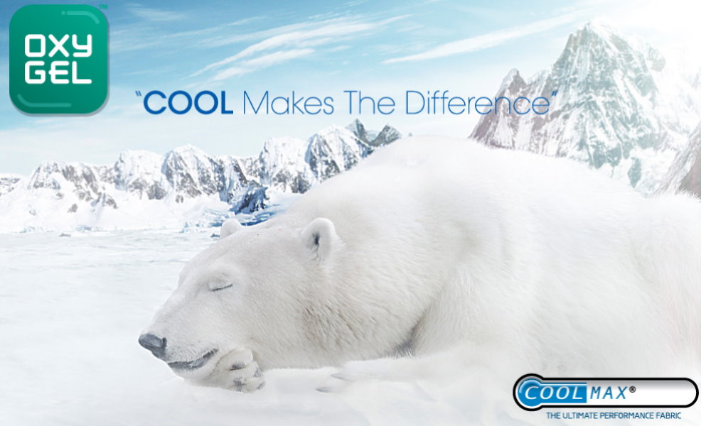 Oxygel™ thermal conductivity favors heat dispersion resulting in reduction of body respiration with benefits to blood circulation and increasing quality of sleep. The liquid gel draws heat away from the body and regulates body temperature. Cool, refreshing gel layers are permanent solution to tossing, turning and pillow flipping.